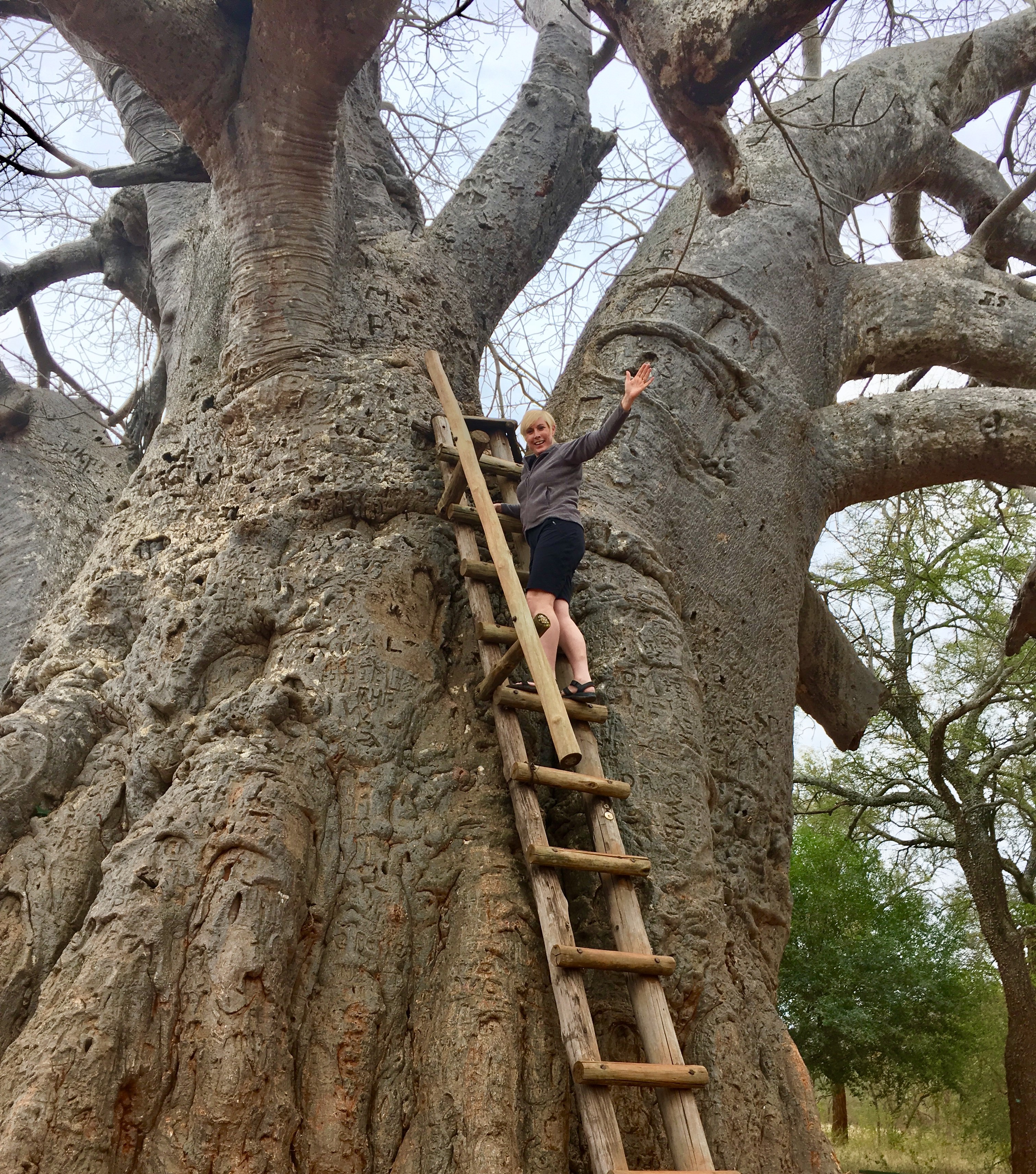 He points to the battered branches of leafless trees as signs of elephants passing through, and spots ‘go away birds’ that sound like they’re telling you to get lost, yellow-billed hornbills (think Zazu from The Lion King), giraffes, impala and a pregnant hyena, which van Rhyn says is the closest he’s got to the scavenger in daylight.